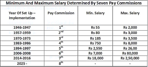 Here are the historical minimum and maximum wages determined by seven pay commissions since the beginning.