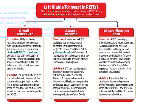Real estate experts are positive about the future of REITs. Says Agarwal: “With institutional investors vying to park funds in Grade A office stock across top property markets, the rents for these listed properties are likely to grow.” This would mean better dividend income in the future.