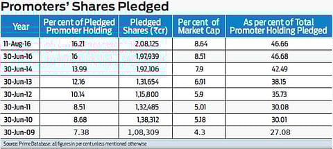 According to a recent PRIME Database report, 522 of the 1,538 companies listed on the National Stock Exchange have at least some share pledging and pledging of shares by promoters is at a sevenyear high.