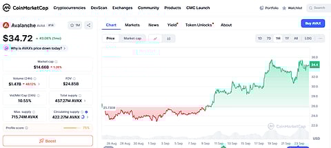 AVAX prices have soared by over 41% in the past month, leaving many investors quite happy with their bags, but its momentum paused around the $34 price point for the second time in a week. Its recent growth is mainly attributed to rising on-chain inflows primarily from corporate treasury initiatives aimed at accumulating AVAX.