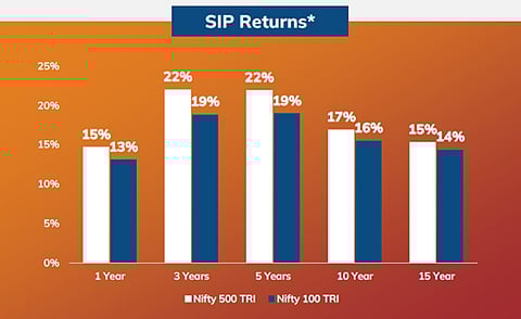 The Nifty 500 Index offers diversification across sectors and market caps, providing dynamic exposure to large-cap, mid-cap, and small-cap segments. This comprehensive approach ensures that investors can capture growth opportunities while adapting to changing market conditions.