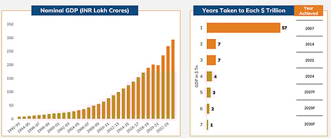 India's economy is growing quickly and steadily, offering opportunities for investment. With its nominal GDP expected to increase significantly in the coming years, India is set to become one of the major player in the global market. This growth creates a strong chance for investors to potentially benefit from the country’s expanding industries and markets, making it a good choice for building long-term wealth.