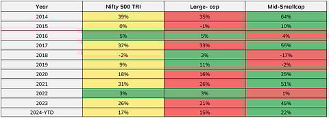 Dynamic Market Cap Exposure: Offers exposure to large, mid, and small-cap stocks, adapting to changing market trends