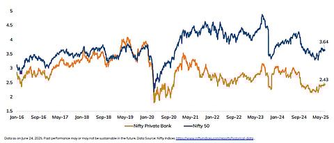 *Source - Nifty Indices and Capital Line for the Reported Profit After Tax data, Nifty 50 and Nifty Private Bank index constituents as on June 24, 2025 and Reported, Profit After Tax data as on Financial Year 2024-25.