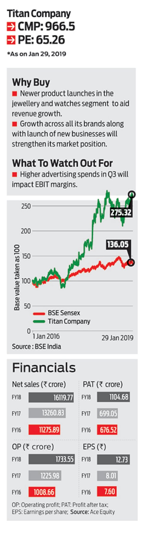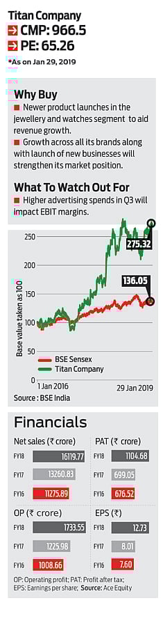 The fifth largest watch manufacturer in the world, Titan Company in its purview for quarter (Q3) Financial Year (FY)2019 has highlighted a good growth across all its business segments. An aggressive retail network roll-out has helped the company cross the two million sq.ft mark during Q3. Titan’s retail network has around 1,600 exclusive stores and it has added another 40 stores in the first half (H1)FY2019 on a net basis. The management in its Q3 update has cited healthy growth due to robust customer demand in the festive season. An analyst tracking the company at ICICI Direct said, “We anticipate H2FY2019 revenue growth to be significantly better (as compared to 17 per cent growth in H1FY2019) as Q3FY2019 is predominantly expected to be driven by strong festive demand while Q4FY2019 is expected to be supported by higher number of wedding dates.”
