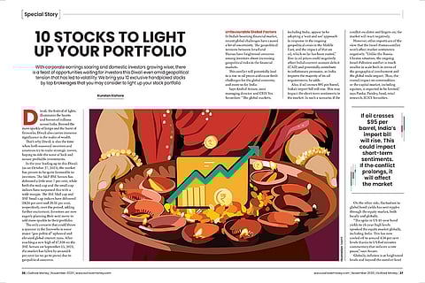 The festive season is a good time to buy stocks. Personally, I have been taking part in the muhurat trading of the stock market on the day of Diwali by investing a token amount in a few stocks. The article, 10 Stocks To Light Up Your Portfolio, November 2023 issue, was particularly helpful in that regard. Though I typically invest in bluechip stocks and rarely in mid-caps and small-caps, maybe it makes sense to look at stocks of the emerging small companies as well.