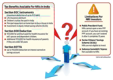 NRIs can get tax deductions on certain products, many of which come under Section 80C of the Income-tax Act, but there are others too (read Tax Benefits Available For NRIs In India).