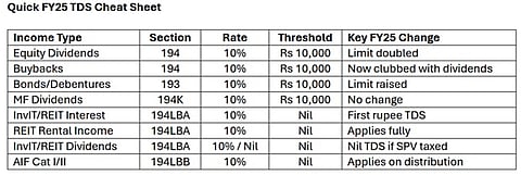 Rs 40,000 from a REIT: 70 per cent rental income (TDS applies) and 30 per cent dividend (TDS applies).