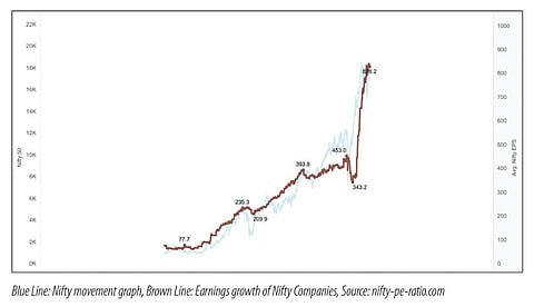 Now, coming to the investors wearing far-sighted lens. Such investors tend to reflect the behavior of the market over long term. Both earnings and Nifty levels are approximately up by 12 times since the year 2000, and this is not at all coincidental. The blended values of the Nifty companies always mirror their earnings. Don’t make the mistake of reading past this too quickly, because you have just discovered why stocks have gone up so much over the last two decades. In the long run, it is the corporate earnings that have always driven the market. See the below image which depicts the market movement and earnings.