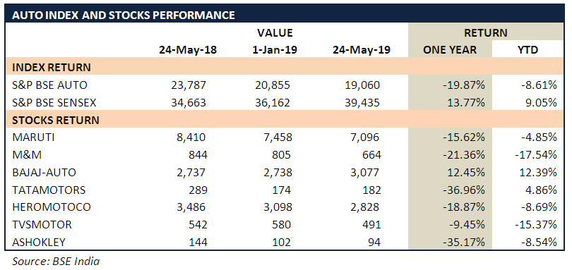 Dismal corporate earnings and adverse business environment has led to significant value erosion in auto stocks, the broader BSE Auto Index has lost almost a quarter of its value at a time when the Benchmark Indices Nifty and Sensex have been up by nearly 14%. Maruti Suzuki, has lost 45% of its market cap from its lifetime highs, the story is not very different for stocks in the two-wheeler, commercial and agricultural segments of the auto industry.