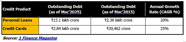 Among the various credit products available today, credit cards and personal loans remain the most sought-after sources of unsecured credit. India's household debt has risen from 34 per cent of GDP in 2019 to 42 per cent in 2025.