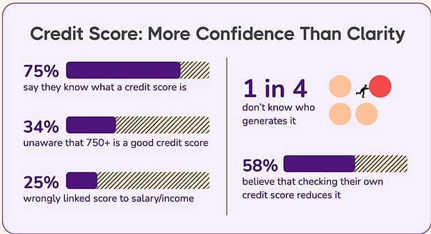 * Only 66 per cent knew that a score of 750+ is considered good. Many wrongly believed 500–700 is sufficient.