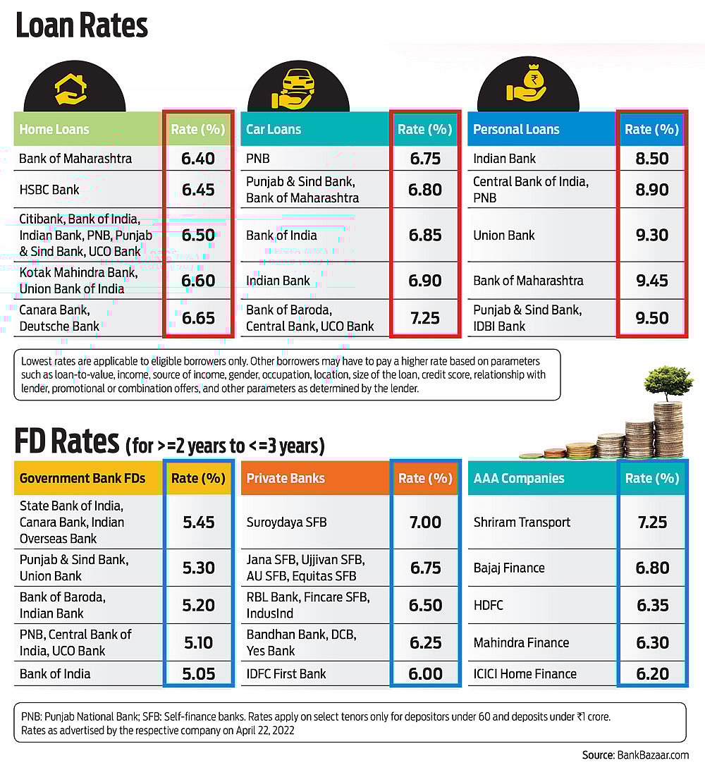 Lowest Loan, Highest FD Rates Photo: Lowest Loan, Highest FD Rates