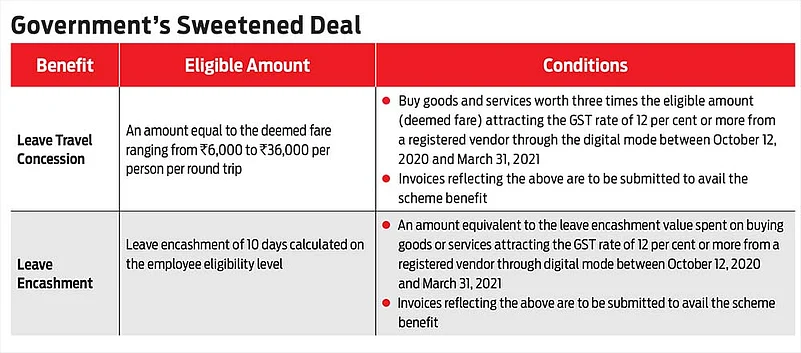 This looks like an attractive scheme for employees planning to buy goods or services during this festive season. Most white goods such as mobiles, vehicles except electronic vehicles, refrigerators, washing machines attract GST at 12 per cent or more. Employees may use LTC benefits and reduce their overall expenditure on purchases by opting for this scheme.