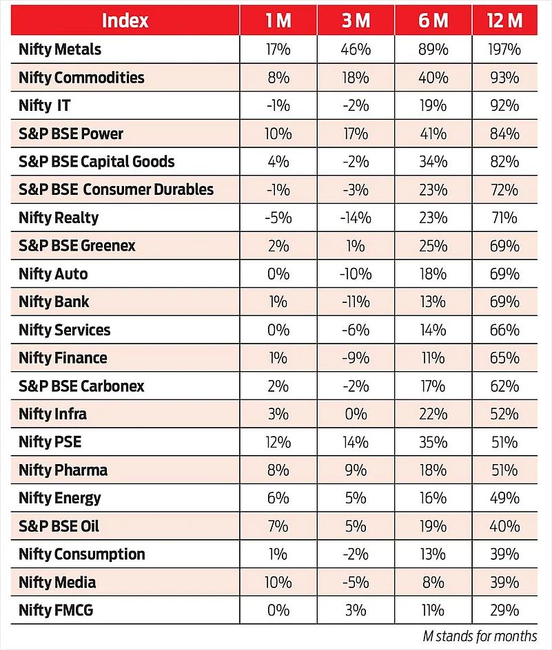 In our opinion, IT, chemicals, top private banks, pharma, domestic capital goods manufacturers and metals will continue to outperform the broader markets.