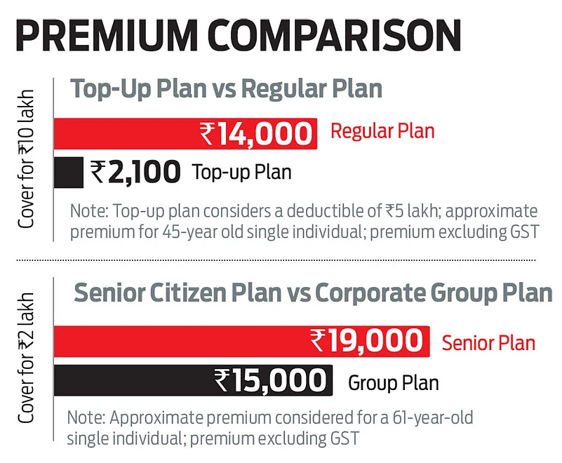 If you already have exhaustive health coverage from your employer with no sub-limits, co-pay, and cappings, then it is advisable to buy a top-up plan. They carry a deductible, which substantially lowers the premium compared to a regular health plan. Some insurers also allow top-up plans to be converted into a regular plan, provided you meet some conditions, such as the plan should have been bought before the age of 50, renewed for five continuous years, and the right to convert should be exercised before the age of 60. The key advantage here is that there is no revaluation of the health status. So, even if the person has developed a new health condition, the deductible could still be waived off. If the current coverage provided by the employer has limits, then buy a regular health plan.