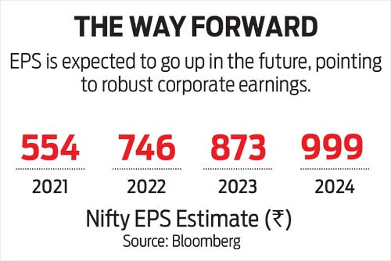In 2018, banks were making a provision of 2-2.2 per cent of total assets, which has now come down to 0.8 per cent. Reduced provisioning is strengthening the bottomline and earnings per share of financials that are part of the Nifty. “Almost 60 per cent of future profits may come from normalisation of provisioning,” adds Borawake.