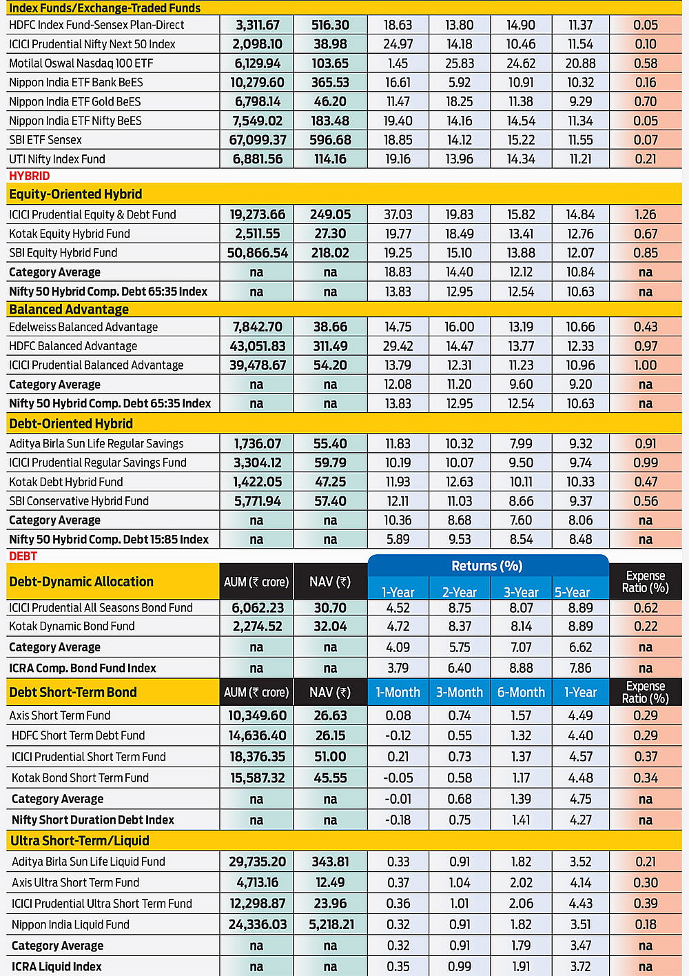 A set of 50 mutual fund scheme recommendations for your short- and long-term needs