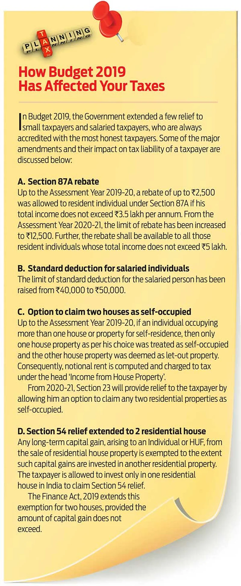 When we are discussing tax planning, needless to say that Budget 2019 also needs a mention. Keeping in mind the budget, Shah said, that Budget 2019 raised the standard deduction for salaried taxpayers from Rs40,000 to Rs50,000 and also announced an increase in rebate from Rs2,500 to Rs12,500 for individual taxpayer with an annual income of Rs5,00,000.