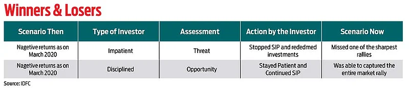 While investors started returning to SIPs after the first wave, the more patient ones did not withdraw from equity markets and continued investing via SIPs. They were a happier lot. Equity markets touched all-time highs soon after the second wave began waning. They reaped double and triple-digit returns over a year and two years, respectively.
