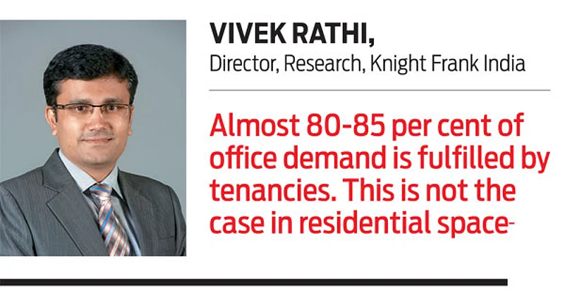 Vivek Rathi, Director, Research, Knight Frank India, narrates his own experience, “Almost 80-85 per cent of office demand is fulfilled by tenancies. Same is the case with retail and warehousing. But this is not the case in residential space demand. Here you do not have any institutional rental housing market, which would allow homebuyers not to deal with difficult landlords.”
