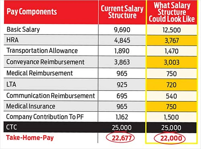 Sawant says that with the labour reforms coming into play, employers will start modifying the employee compensations to accommodate the new definition of wages. “The likely changes are going to include better post-retirement benefits, and dropped take-home salaries. There is going to be an increase in the provident fund and gratuity contributions from the employer’s end.” If an employee has a monthly salary of Rs 25,000 with a basic pay of Rs 9,690, which roughly translates to around 38 per cent of the CTC, the PF contribution works out to Rs 1,162. Since the PF contribution by both the employee and the employer is accounted for in the CTC, the net take-home-salary would roughly be around Rs 22,677. After the new code is implemented, the PF contribution would have to be calculated based on the new definition of wages, which has to be at least Rs 12,500 in this case. So, the PF contributions by both the employee and the employer would increase to Rs 3,000 each, bringing down the take-home salary to Rs 22,000, a notional reduction of Rs 677 per month. If contribution to gratuity is also considered, the reduction in take-home-salary would be around Rs 820 per month. While the monthly take-home-pay would see a reduction for a large section of employees, it would also ensure larger social security benefits as they would now be computed on a larger amount defined as wages.