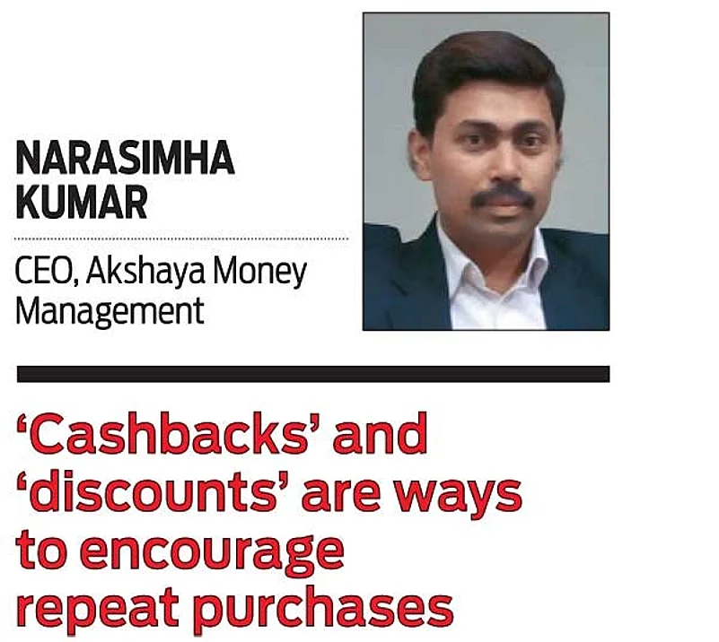 However, Narasimha Kumar, CEO, Akshaya Money Management, negates such attitude despite cashbacks and discounts saving some extra money because, “Sellers give ‘cashbacks’ or ‘discounts’ to onboard new customers and encourage repeat purchases. In a typical cashback, the seller returns a part of the value to the consumer. However, in the long term, this is more beneficial to the seller than the consumer.”