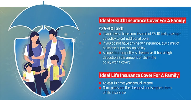 Protection should be the first aspect to be tackled once the goals are defined. The Covid pandemic further highlighted the importance of having adequate life and health insurance. For instance, says Sanyal, their health insurance cover of Rs 5 lakh fell short when the hospital bill for her husband came to around `9.5 lakh. Since then, Sanyal has increased the family’s health coverage to Rs 20 lakh.