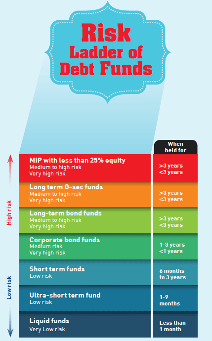 Just as equity investments can be categorised based on market capitalisation, sectors and investment styles; investments in debt funds too has its share of categorisation. “There are various options available to investors depending on maturity of the fund,” explains Avnish Jain, head – Fixed Income, Canara Robeco Mutual Fund. The performance and structure of debt funds is based on three risk parameters – interest rate risk, credit risk and liquidity risk. “Depending on which strategy one invests in, the degree of these risks would change,” adds Iyer. Based on the risk ladder, liquid funds have the least risk, while monthly income plans (MIP) have the highest, because of an equity investment component in them.