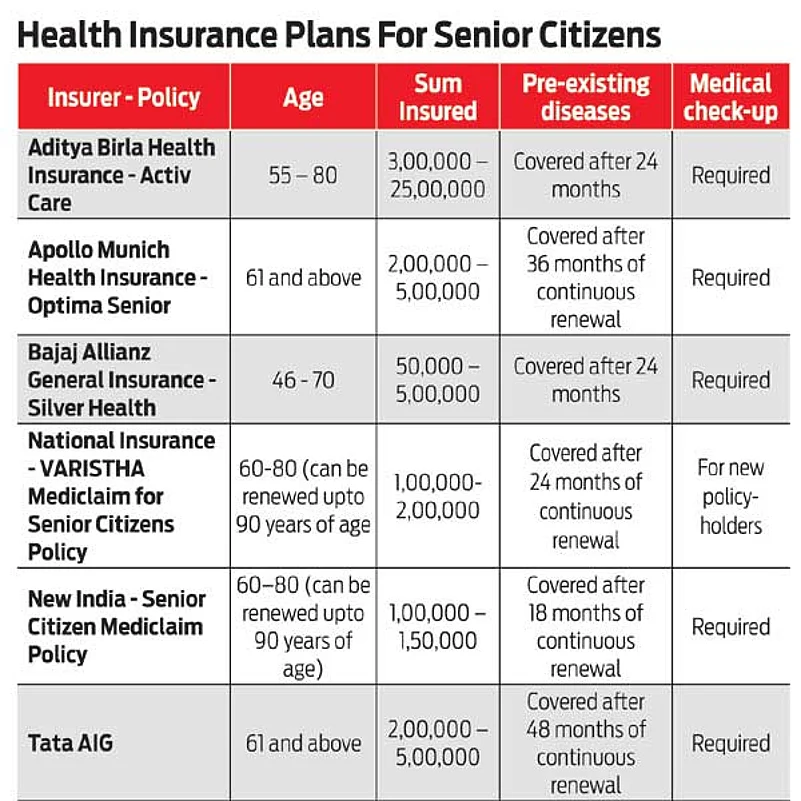 Many insurers have introduced the benefits of a comprehensive health insurance policy at an affordable price for senior citizen with no capping on the hospital room rent, no co-payments and no sub-limits on diseases. Also, the plan has no restrictions on the entry age limit and can be renewed throughout life. It is advisable to choose those plans, which provide maximum entry-level age.