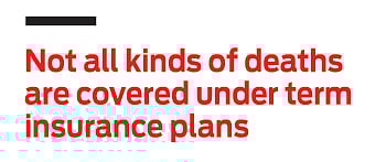 Not all kind of deaths are covered under term plans, there are certain exclusions, which could lead to claim rejection and one must read it carefully before buying the policy.