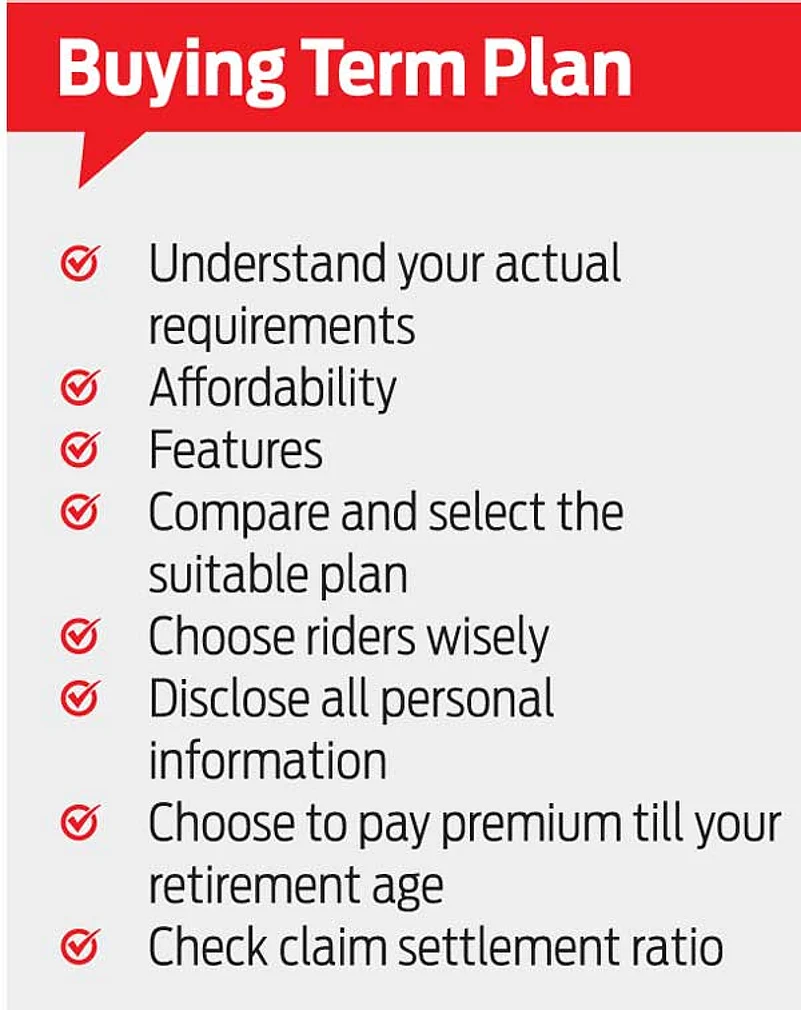Term plan eliminates the financial burden of a family in case of an untimely death of the earning member by acting as an income replacement tool or works as an alternative savings tool. One should first evaluate his or her annual income, savings and investments, medical condition, lifestyle and future financial requirements to opt for the appropriate term plan and adequate sum assured.