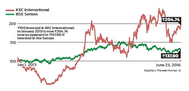 The power transmission and distribution business is the largest business vertical of the company which contributed 74 per cent of the total revenue in FY2016. This was followed by 16 per cent in new businesses like railways, cables and water. KEC is currently executing projects in 33 countries. Around 51 per cent of its revenue came from the international market in FY16. KEC currently has an order backlog of Rs 9,449 crore in FY 2016. In addition, the company has secured new orders of Rs 1,140 crore in the month of April 2016. Its earnings before interest, tax, depreciation and amortization (EBITDA) for the Q4FY2016 stood at Rs 223 crore, an increase of 21 per cent.