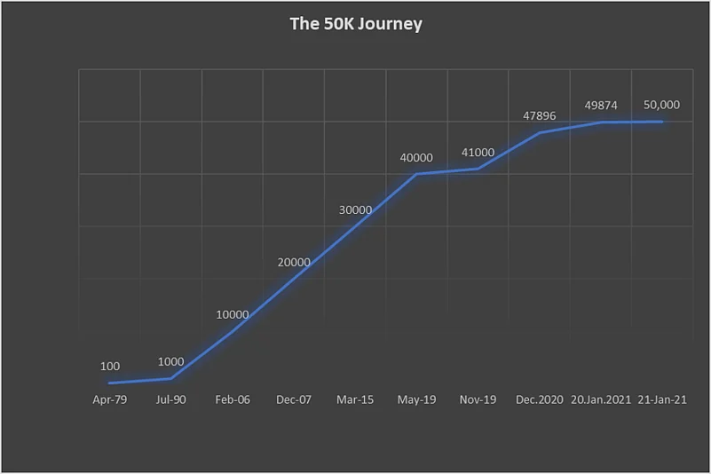 After the Sensex made its debut on the Bombay Stock Exchange (BSE) in April 1979 with a base point of 100, it took 41 years to reach 50k.
