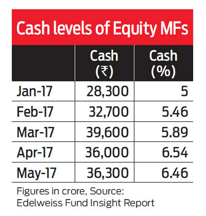On the one hand, market analysts reiterate the depth in the Indian markets to absorb more equity inflows, there has been a pause in the speed at which mutual funds are now using their cash to invest in equities. The cash levels of equity funds are high, as several fund managers feel that the markets are highly valued and the opportunities at valuations comfortable to them is amiss. In May, the absolute cash component hit Rs 36,300 crore. Fund managers are working on ways to reduce the cash levels, but the appetite for more investors coming into equities through the mutual fund route is putting a strain on some funds.