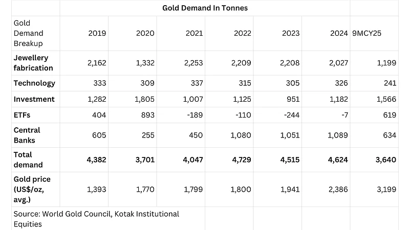 While gold jewellery is a major driver of demand, there has been a significant shift in the nine month period of 2025. In the nine month period, the demand for gold for ETFs and for other investment purposes surged to 619 tonnes and 1,566 tonnes respectively. On the other hand demand for gold for crafting jewellery witnessed a significant decline. This suggests that amid the rally in gold prices Indian investors are adopting a more financially astute approach to gold ownership.