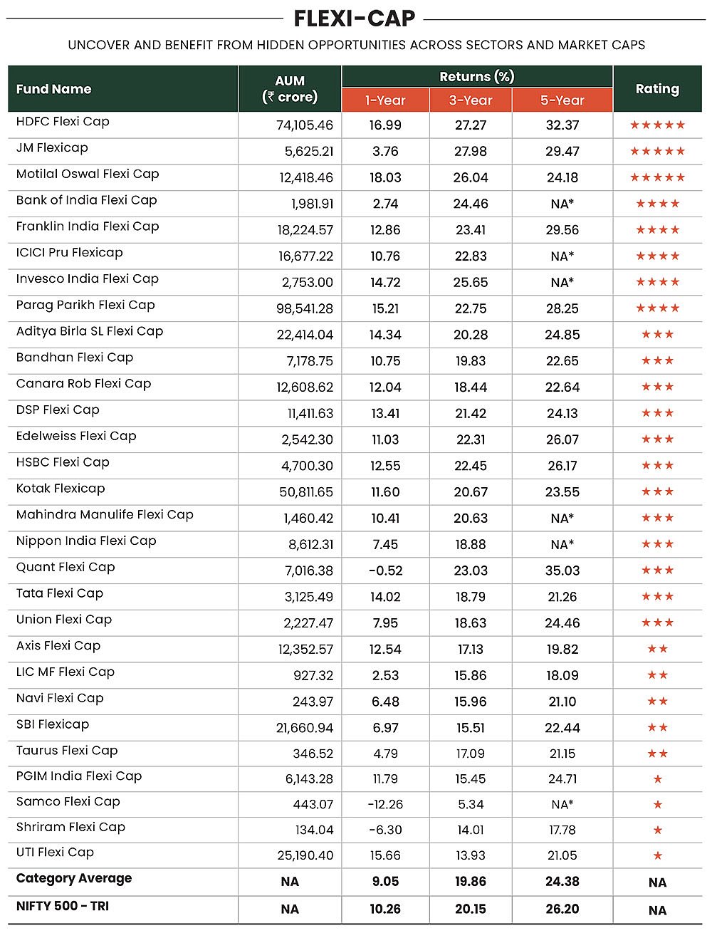 This led to the higher divergence in performance across all categories of equity funds. In the large-cap space, the difference in the best and worst performing—DSP Large Cap with 16.75 per cent and JM Large Cap with 1.09 per cent—is 15. 67 per cent. The highest divergence was seen in the flexi cap category (30 per cent). The best (Motilal Oswal Flexi Cap) gave 18.03 per cent, while the worst (Samaco Flexi cap) fell 12.26 per cent. In all, 18 out of 29 schemes selected managed to outperform the Nifty 500-TRI Index.