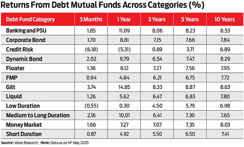 “As most debt fund investors are conservative - low duration/ short term / Banking PSU categories with optimal exposure to AAA rated paper would be the ideal option. Investors investing in search of higher return (with higher risk) can consider dynamic / credit risk funds. Doing a Systematic Investment Plan (SIP) in gilt funds can be considered as a part of long-term investment goal. Shorter duration funds, especially overnight and liquid funds, are a safe bet for short-term parking and capital protection needs,” explains Jasani.