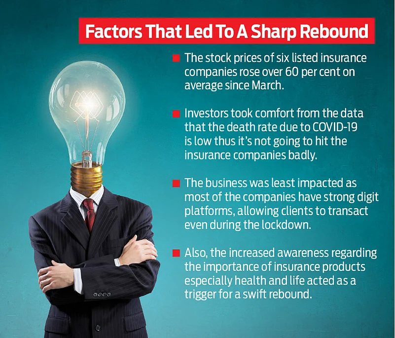 Multiple factors have led to a sharp rebound in stock prices. “The rise in stock prices comes from the fact that participants took comfort from the data that the death rate due to COVID is low and thus it is not going to hit the insurance companies badly,” says Ajit Mishra, VP - Research, Religare Broking.