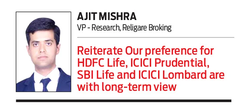 “We would reiterate our preference for insurance stocks such as HDFC Life, ICICI Prudential, SBI Life and ICICI Lombard are with only long-term view,” says Mishra.
