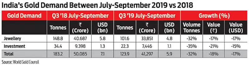 According to WGC, India’s Q3 2019 gold demand value was Rs41,297 crore, down by 18 per cent as compared to Q3 2018 (Rs50,085 crore). The total jewellery demand in India for Q3 2019 dropped by 32 per cent at 101.6 tonne as compared to Q3 2018 (148.8 tonne).