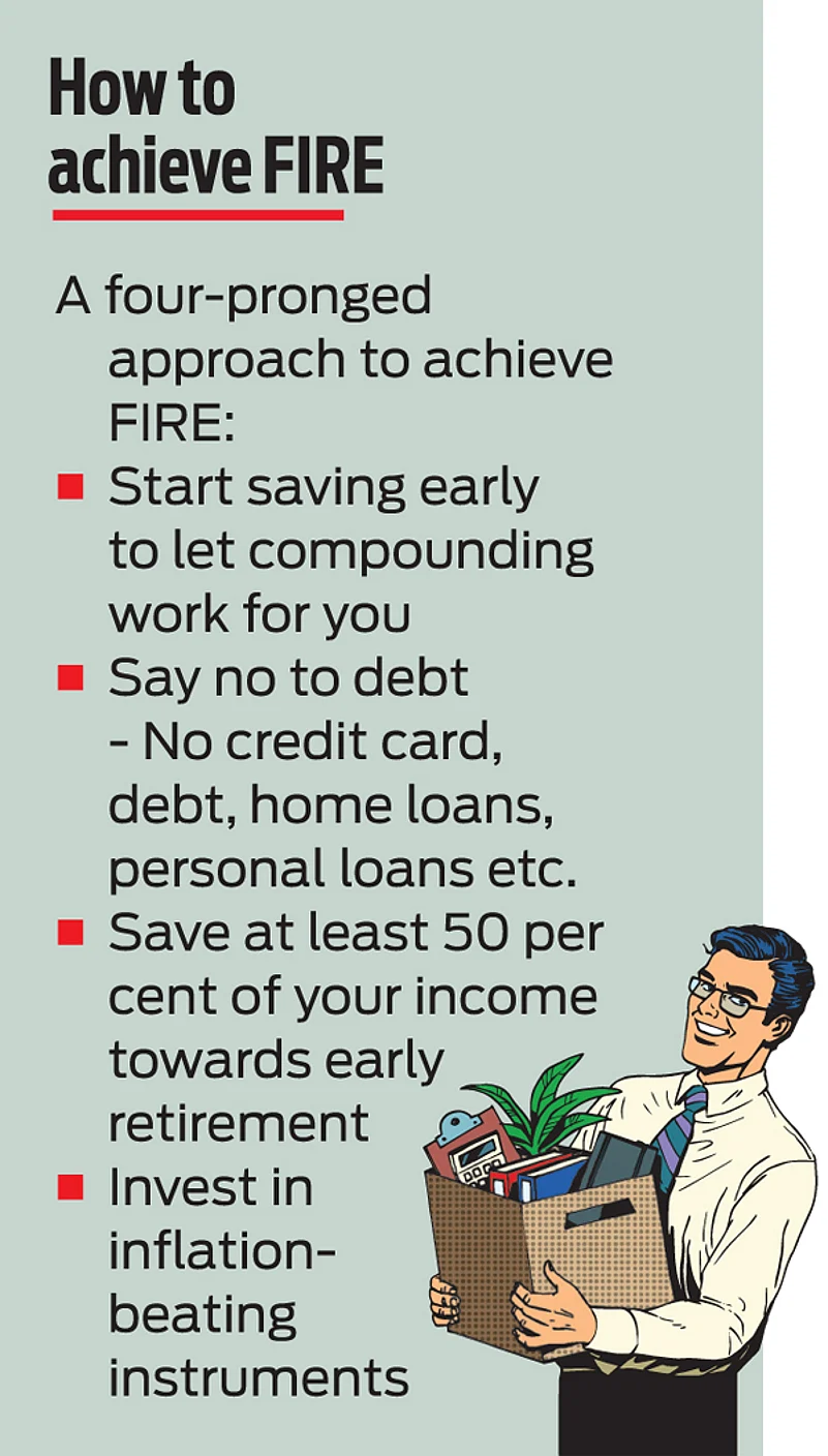 The concept of early retirement is gradually gaining momentum wordwide as well as India. The phenomenon is aptly termed as FIRE – Financial Independence and Retire Early. The group FIRE – is a set of people who have this philosophy and mindset that is to retire early and pursue their passions.