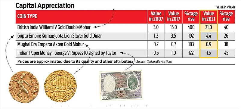 “There are several niche areas that are doing extremely well. Ancient India coins such as Gupta gold coins, Mughal coinage, those from the Princely States, and British India coins are ever so popular with collectors and investors alike,” says Todywalla.
