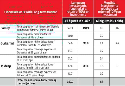 Then one fine day, he was explained about the importance of managing funds in a professional way. Dr. Kamal immediately fixed an appointment with us. We made him aware of the future value of his forthcoming responsibilities about his children, Gurkamal (19) and Jaideep (13) and also charted a way for his retirement planning.