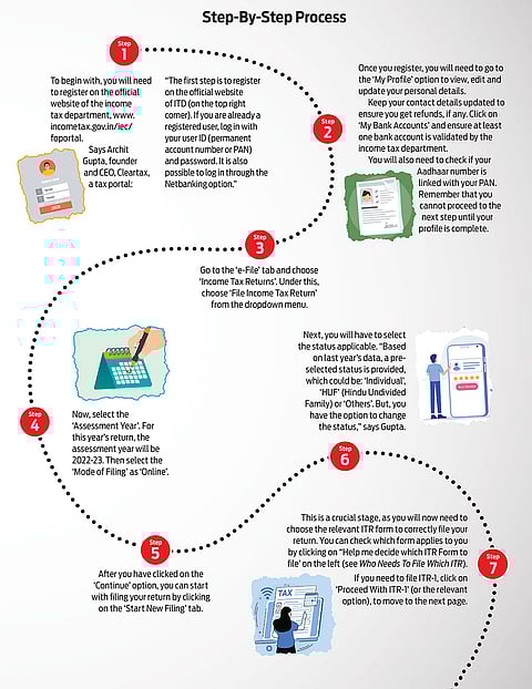 If you like to DIY, here is a step-by-step guide to help you file ITR this year. But do remember to keep all the information ready (see Additional Information, List Of Documents).