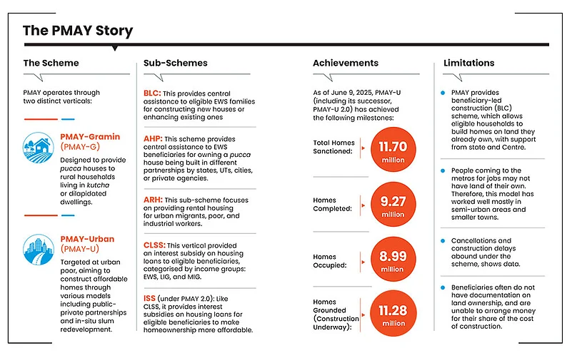 Those who qualify for PMAY have a ray of hope. PMAY-Urban 2.0, which was launched in late 2024, represents the government’s renewed attempt to course-correct and extend housing support to a wider spectrum of urban families. It sets a new target: 10 million additional homes by 2029, with a budget of Rs 2.3 lakh crore.