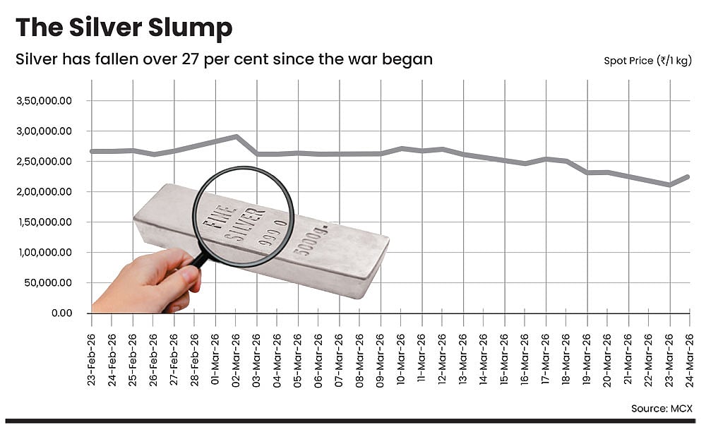 Markets that were expecting rate cuts are now bracing for a tighter policy. Typically, higher bond yields and a stronger dollar create pressure on gold. Says Mehta: “Physical demand from key markets such as India, the Middle East and China has softened due to high prices and economic uncertainty, removing a key support base. At the same time, crowded positioning after last year’s rally has led to sharper unwinding as investors liquidate profitable holdings to cover losses elsewhere.”