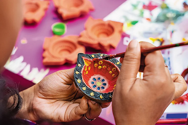 A row of earthen diyas often look more beautiful than fancy decorative lights. “Decorate traditionally with old silk, earthen deepaks, flowers, and rangoli. They are easy on the pocket, and the money goes to local workers,” says Renu Maheshwari, principal advisor, Finzscholarz Wealth Manager, and a Securities and Exchange Board of India-registered investment advisor (Sebi RIA).