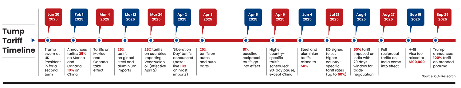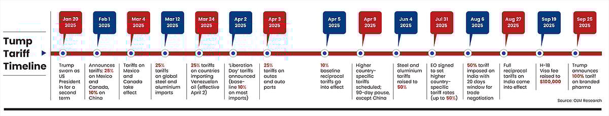 For the past few months, what has dominated the collective imagination of the country, particularly equity investors, is US trade tariffs. US President Donald Trump dropped the first bomb on July 30 when he announced to impose a 25 per cent tariff on India. Barely a week later, on August 6, came the second strike: a “punitive” tariff of another 25 per cent for India’s continued purchase of Russian oil. This second tranche of tariff came into effect after August 27, 2025, the interim serving as a warning period for India. The steep cumulative tariff of 50 per cent has affected a range of export-oriented sectors, such as textiles and gems and jewellery.