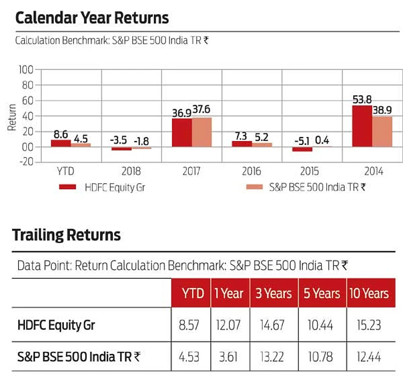 The process is solid with research at its core. Prashant Jain adopts a hands-on approach to research, to ferret out quality companies with robust business models, clean balance sheets and competitive strengths. He adopts a research-intensive approach to get an in-depth understanding of the business. Though the bottom up style is clearly integral to Jain’s investment style, the top-down isn’t ignored either. Hence, the style can be described as a mix of top-down and bottom-up, with the latter being a tad more important. Analysts rate stocks from their sectors based on their estimates of intrinsic value. They are required to maintain a history of their ratings, alongside reasons for changing ratings. This leads to introspection and constant evaluation of the process. Though recommendations are made with a two- to three- year horizon, it isn’t uncommon for stocks to feature in the portfolio for longer time frames. While picking stocks, Jain freely uses relative and absolute valuation methods. The focus on quality and fundamentals gels well with the long-term orientation. When the strategy is not in favour, Jain’s willingness to endure short-term pain and adhere to the approach instils predictability into the process. Expectedly, the investment process will deliver at its best over longer periods spanning a market cycle.